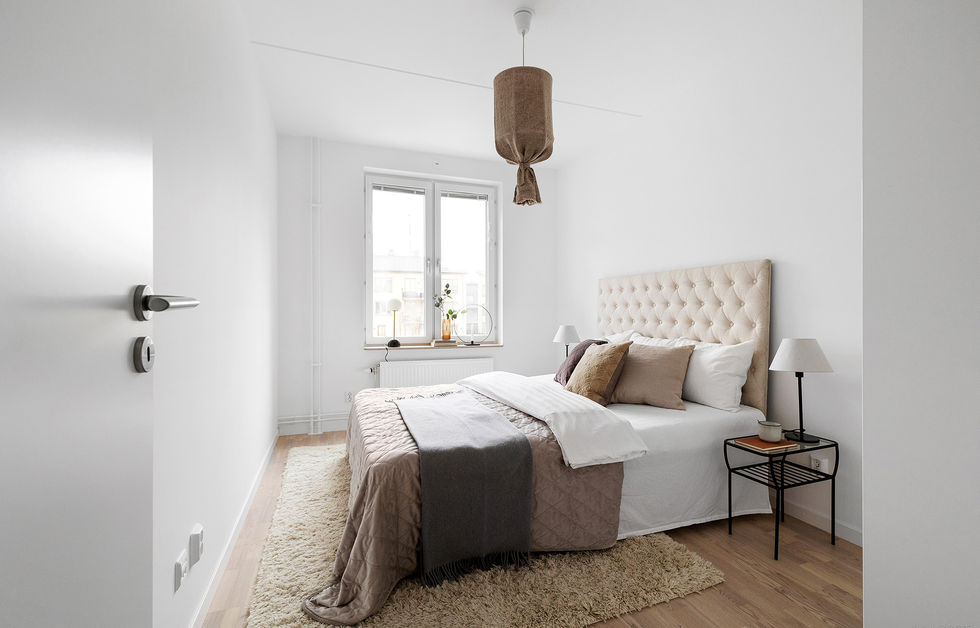 Sovrummet erbjuder en lugn och rofylld plats för vila, med utrymme för både dubbelsäng och förvaring i garderober.